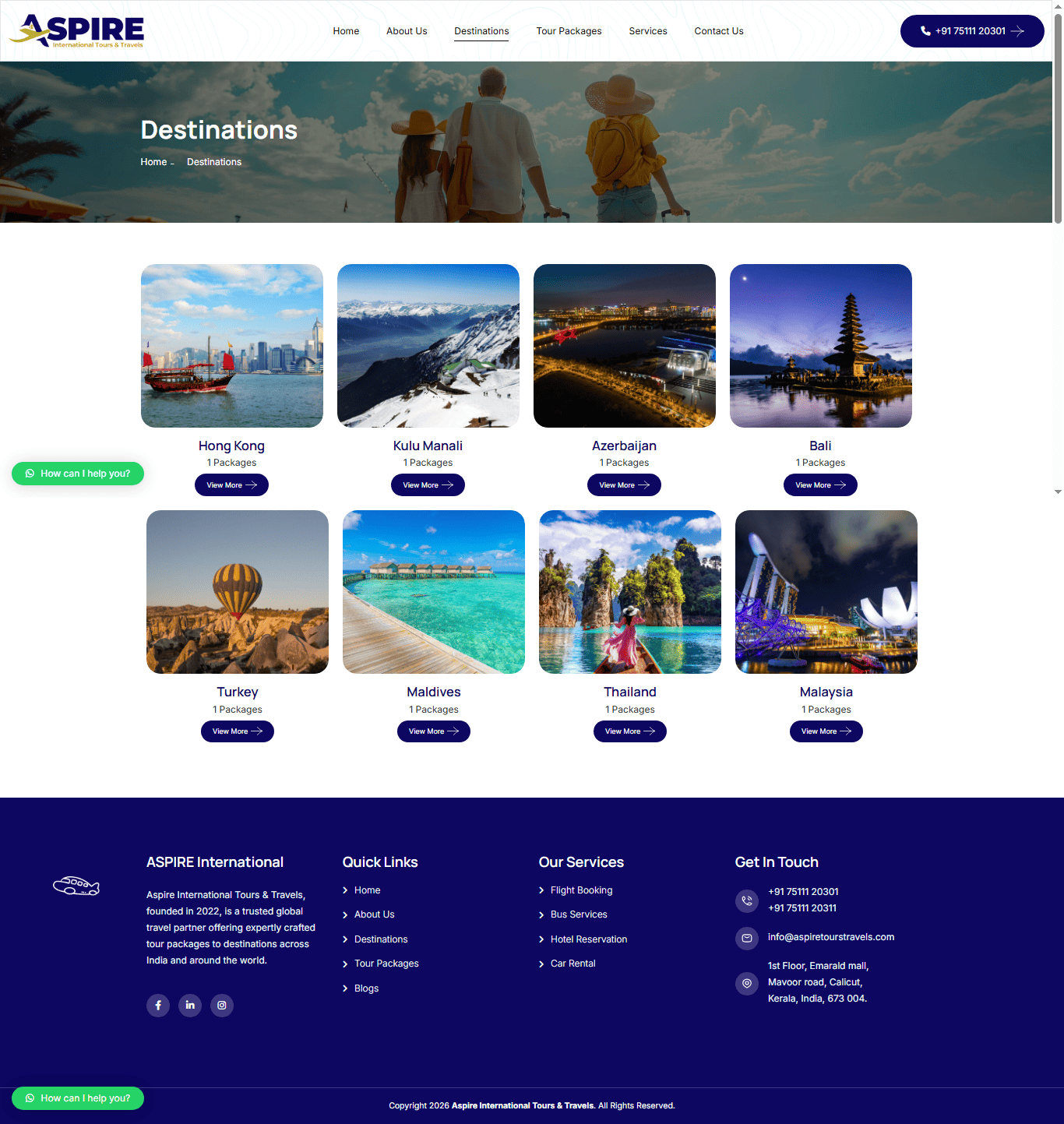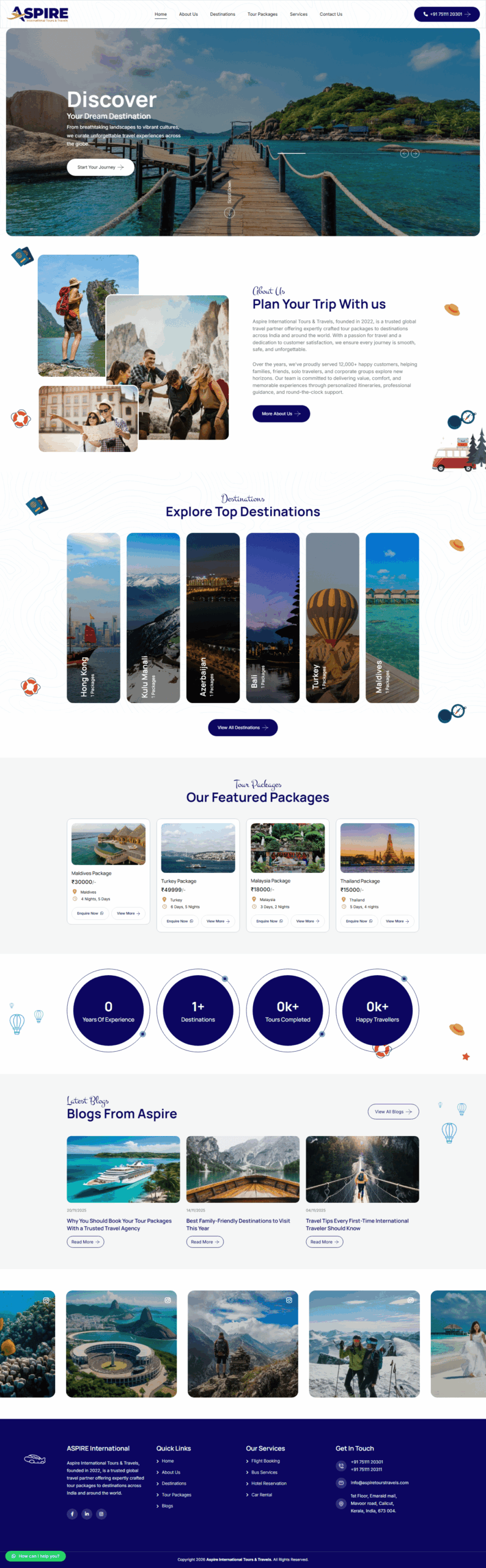 Aspire International Tours & Travels, founded in 2022, is a trusted global travel partner offering expertly crafted tour packages to destinations across India and around the world. With a passion for travel and a dedication to customer satisfaction, we ensure every journey is smooth, safe, and unforgettable.