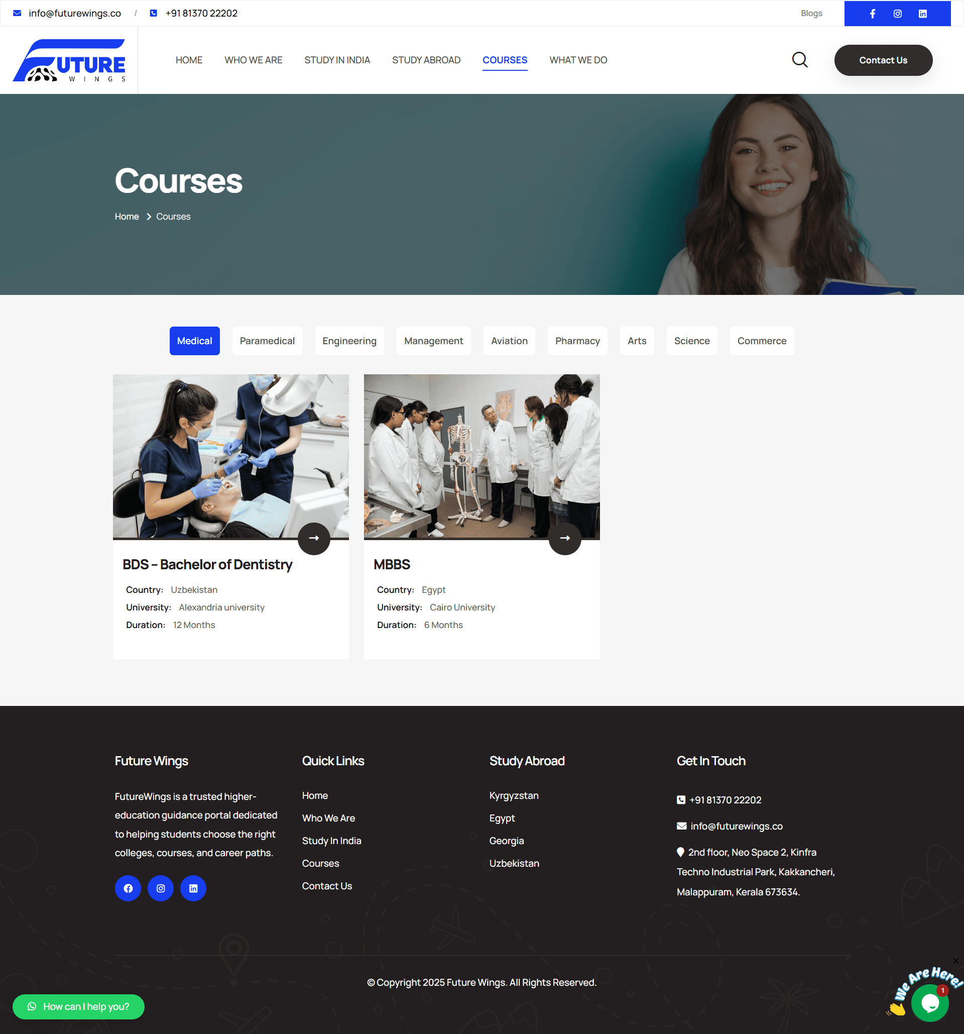 utureWings is a trusted higher-education guidance portal dedicated to helping students choose the right colleges, courses, and career paths. With expert counsellors, verified information, and a student-first approach, They simplify the entire admission journey—making it easy for students and parents to make confident, well-informed decisions.