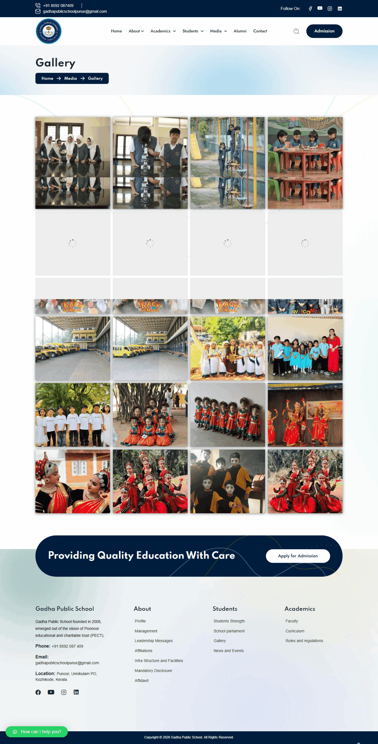 Gadha Public School founded in 2008, emerged out of the vision of Poonoor educational and charitable trust (PECT). The trust has been rendering yeomen service in the field of education for decades. Located on the Poonoor riverside, the school provides a conducive atmosphere for the teaching – learning process. The school is committed to provide holistic education through its team of dedicated teachers who are also constant learners.